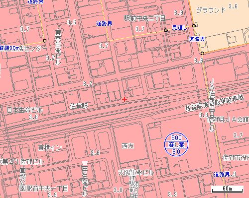 ありました、そのサイトは佐賀市のホームページの地図情報の都市計画図に示されています
