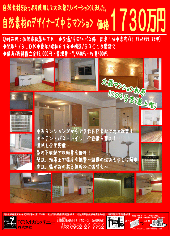 まだまだ、物件の説明がうまく表現できない私ですが、リノベマンションとは別の、もっと佐賀中心部に近いマンションを見てきました。